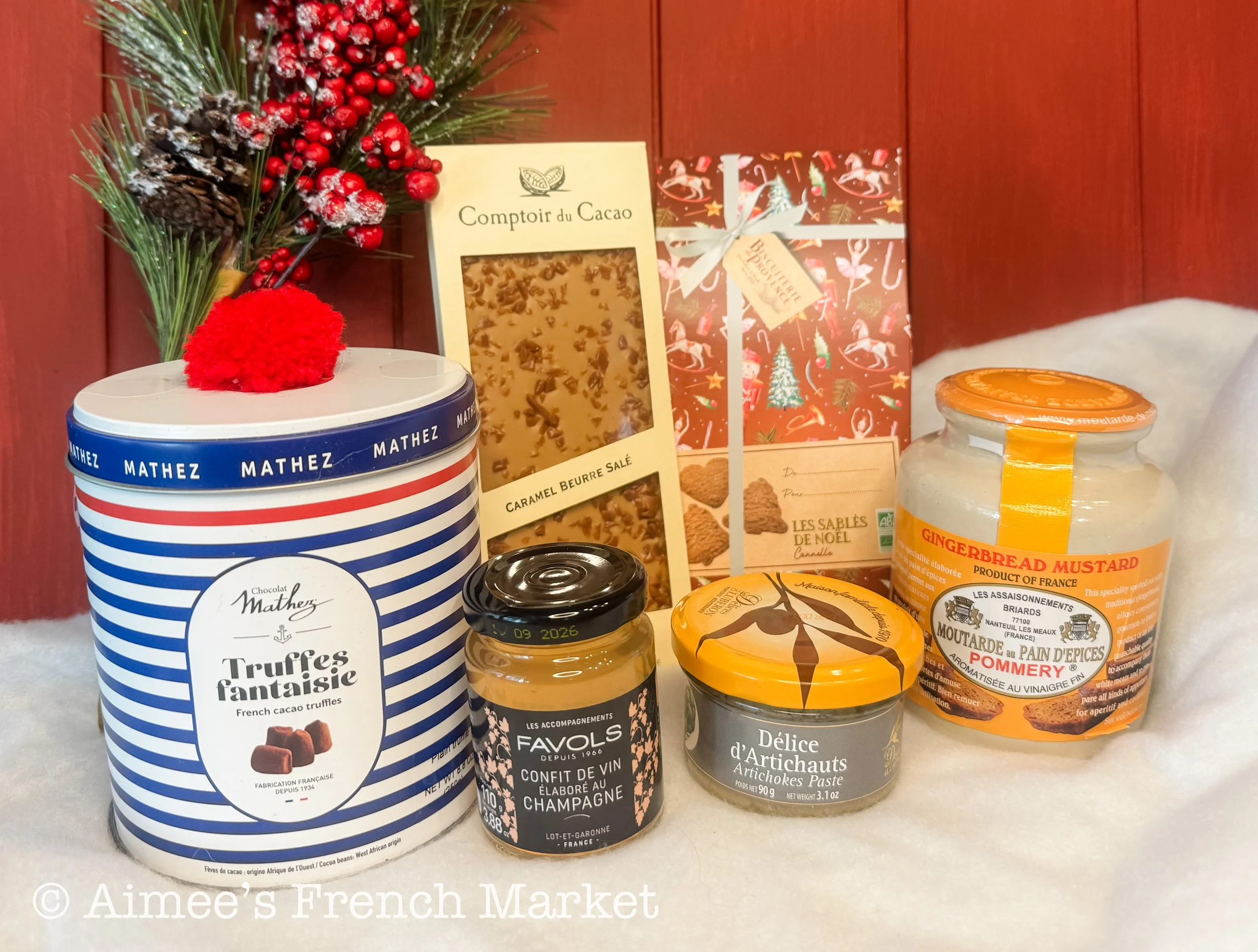 Your 2025 Gourmet Holiday box is back and bigger and better than ever! Six new items, all full size, in the box. And all hand-chosen and made in France. This would make a great gift for someone else or yourself.