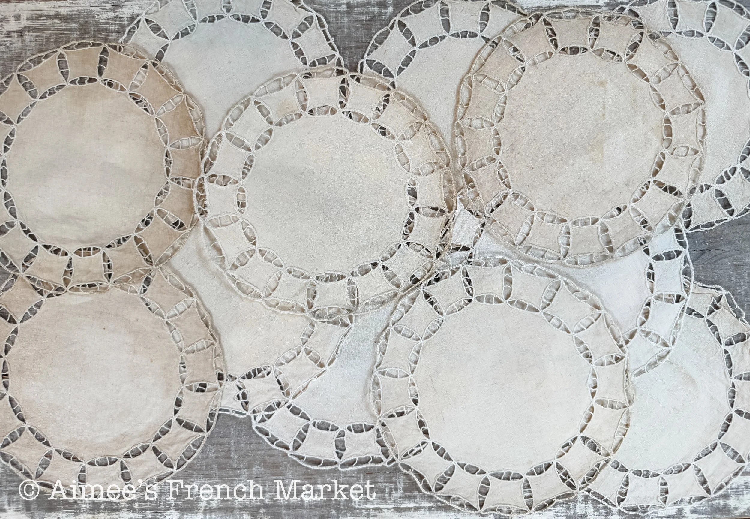 Antique French Embroidered Doillies with Gold Metallic Trim, Set of 5, c. 1800s – Victorian Textile Art